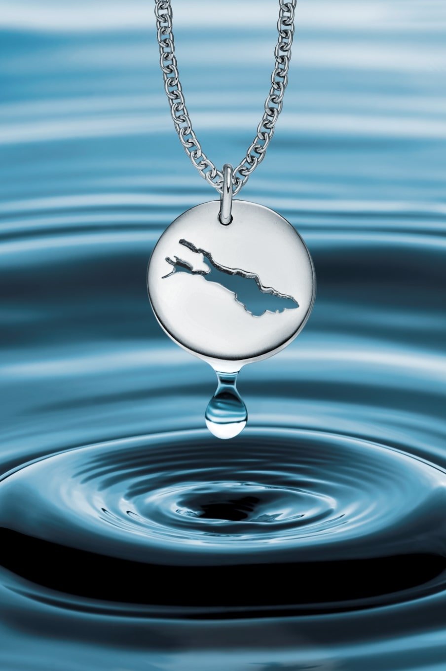 Der Bodensee-Schmuckanhänger, welcher in Weiss-, Gelb-, Roségold oder auch in Silber angefertigt wird, zeigt charmant die Liebe für den See. Er kann entweder in ein Textil-Armband eingearbeitet oder als Anhänger an einem Gold- oder Silberkettchen getragen werden.