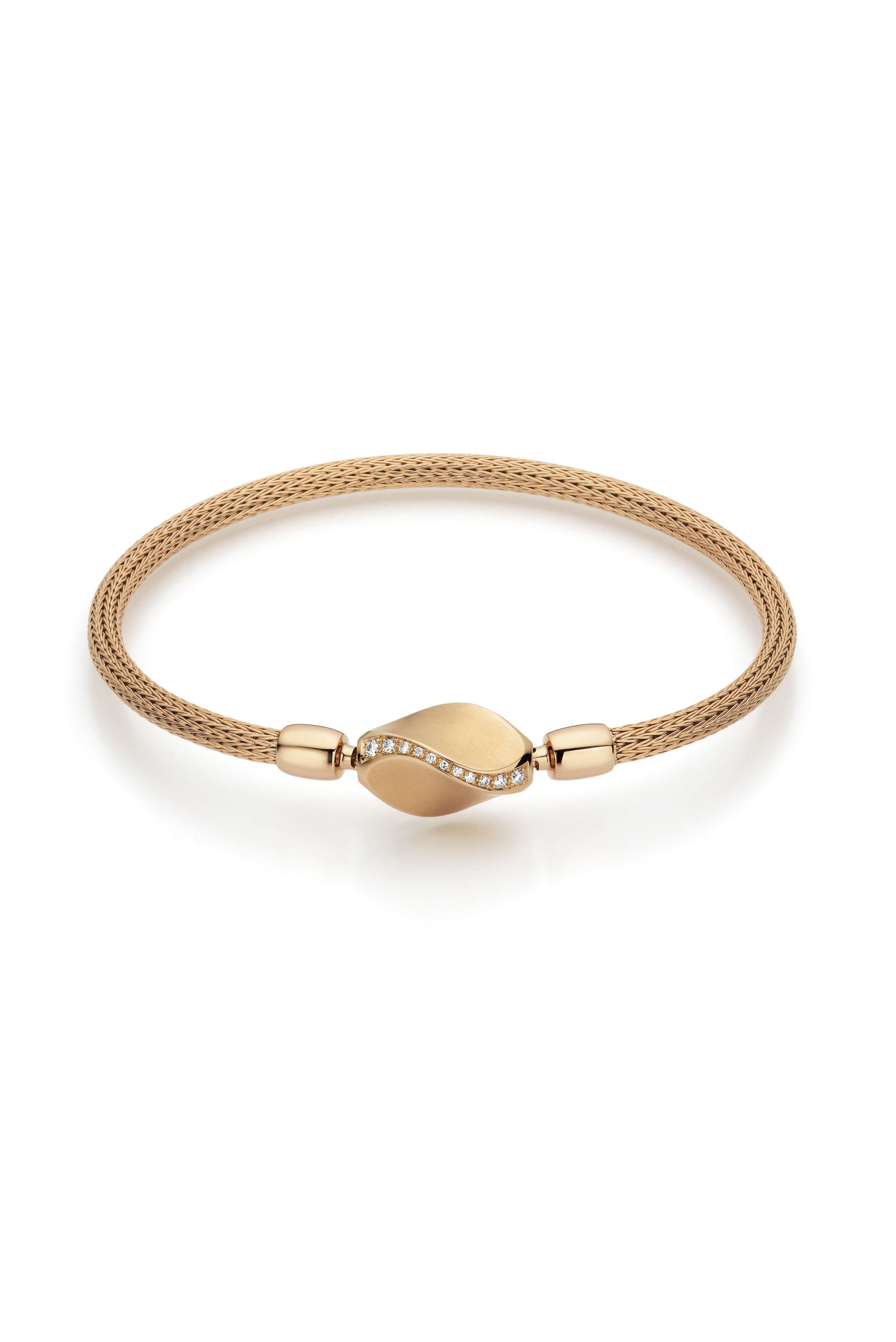 Weiche, fliessende Formen, in sich verdreht, mit einem Hauch von Luxus und Brillanten. Am Collier nicht frontal, sondern seitlich getragen, sieht diese Wechselschliesse umwerfend aus.
