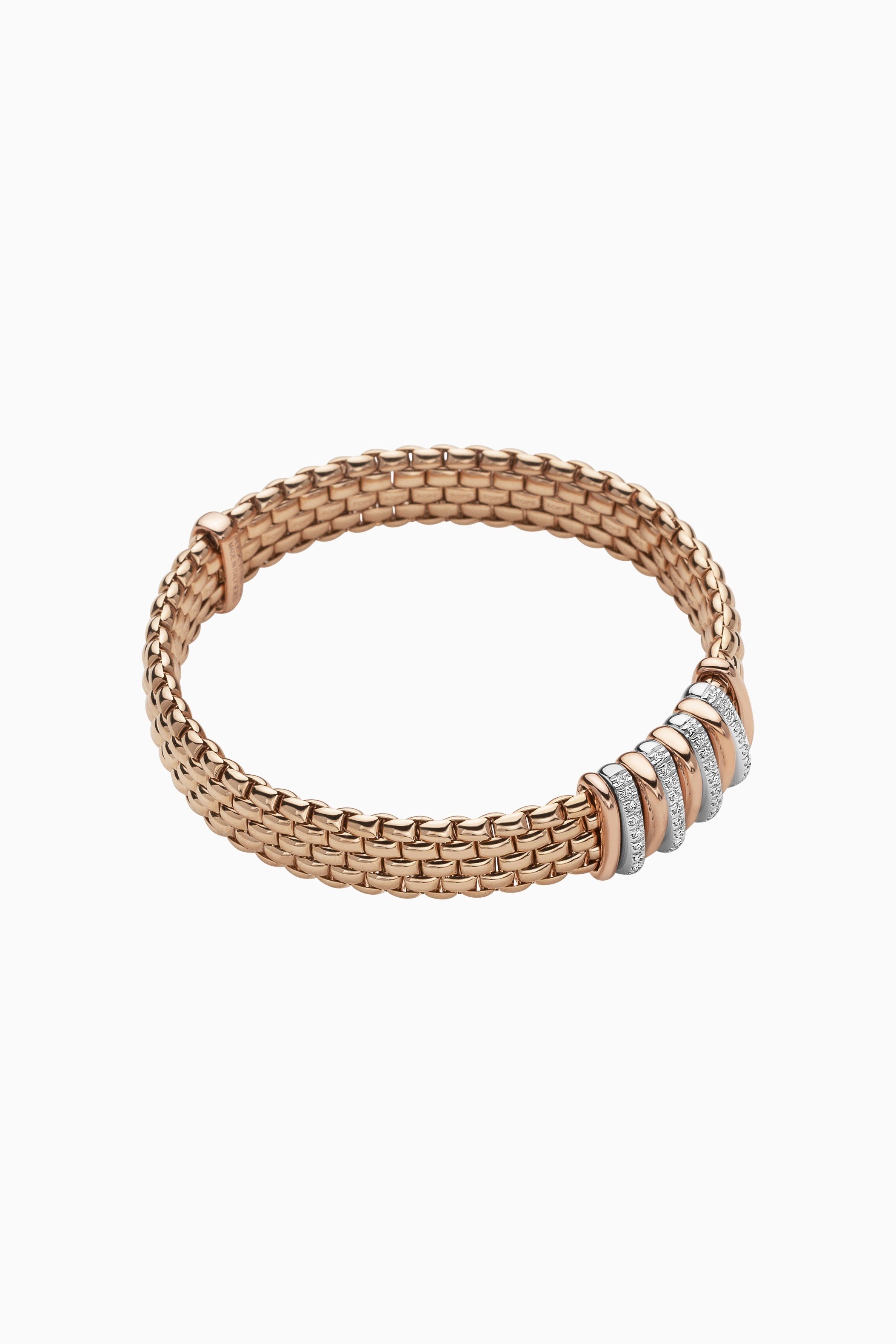 Die «Flex'it» Kollektion mit ihren beweglichen Schmuckstücken ist das Herzstück der Schmuckmarke Fope aus Vicenza, einer italienischen Stadt in der Nähe von Venedig. Winzige Federn aus Gold, die im inneren Aufbau verborgen sind, verleihen den Armbändern und Ringen ihre Flexibilität. Dadurch sind die Schmuckstücke dehnbar: Die Ringe passen sich an jeden Finger an und die runden Kettenglieder der Armbänder lassen sich einfach über das Handgelenk «rollen», ohne jeglichen Verschluss. Die klassischen Schmuckstücke sind zudem von hoher Qualität und damit über viele Jahre tragbar. Trotzdem bewähren sie sich auch im Alltag bestens.