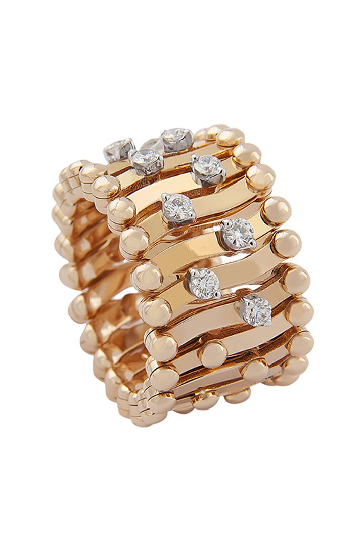 Diese brillante Kreation von Serafino Consoli verführt dazu, mit ihr zu spielen - denn sie lässt sich einfach vom üppigen Ring in ein funkelndes Armband verwandeln. Zwei kostbare Schmuckstücke in einem - wunderbar!