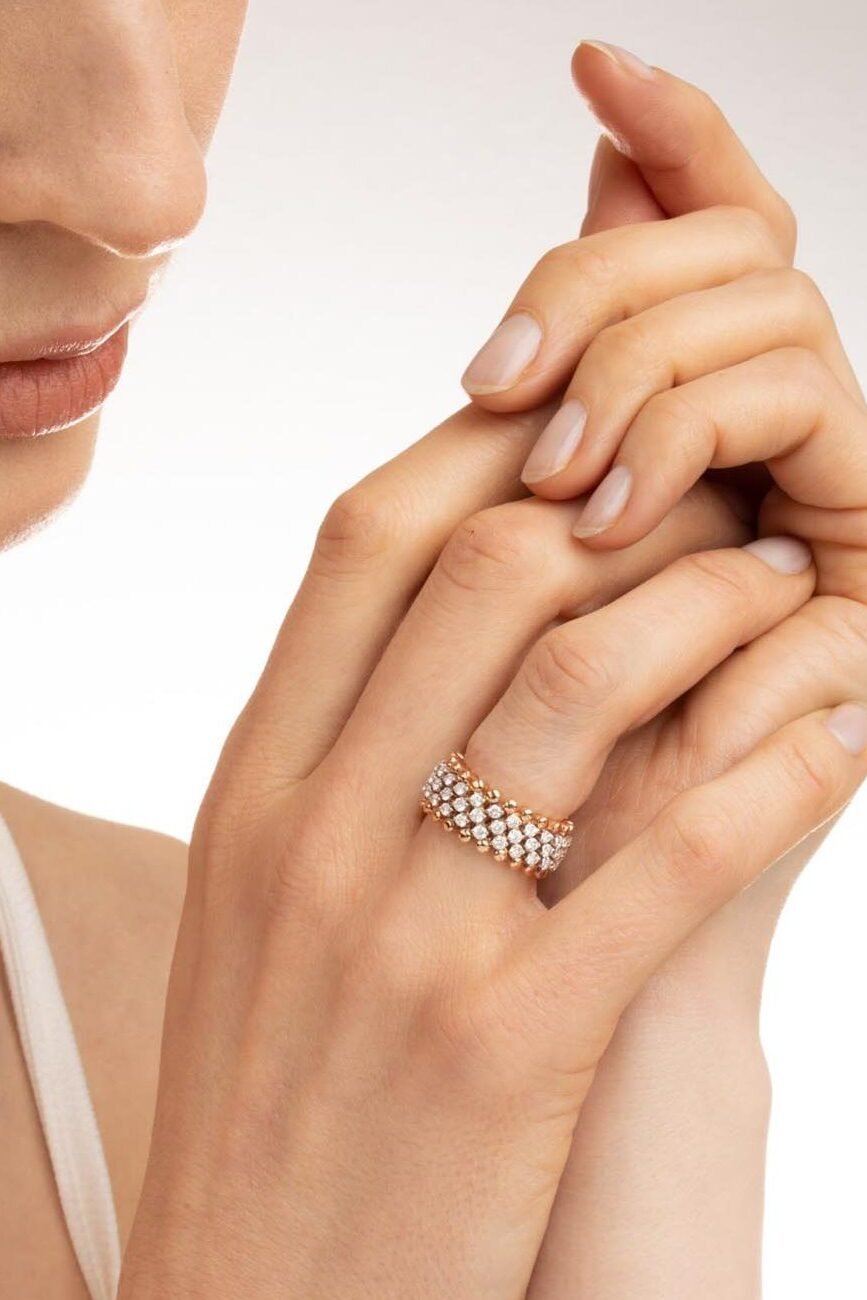 Die einzigartigen Multisize-Ringe der Schmuckmanufaktur Serafino Consoli bestehen aus Tausenden von Schweisspunkten und mehr als hundert Einzelteilen. Durch diese komplexe Herstellung lassen sich die Ringe vergrössern und verkleinern, sodass sie an jeden Finger passen.