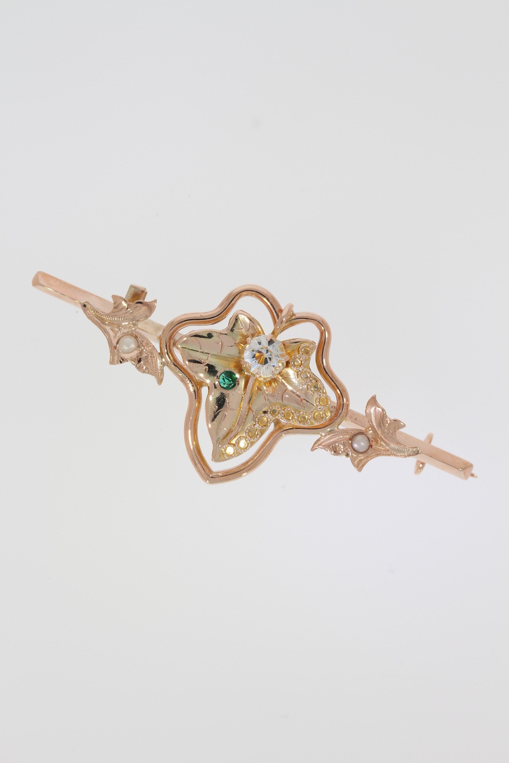 Reservierung anfragenProduktlinie Brosche mit Blatt und Verzierungen