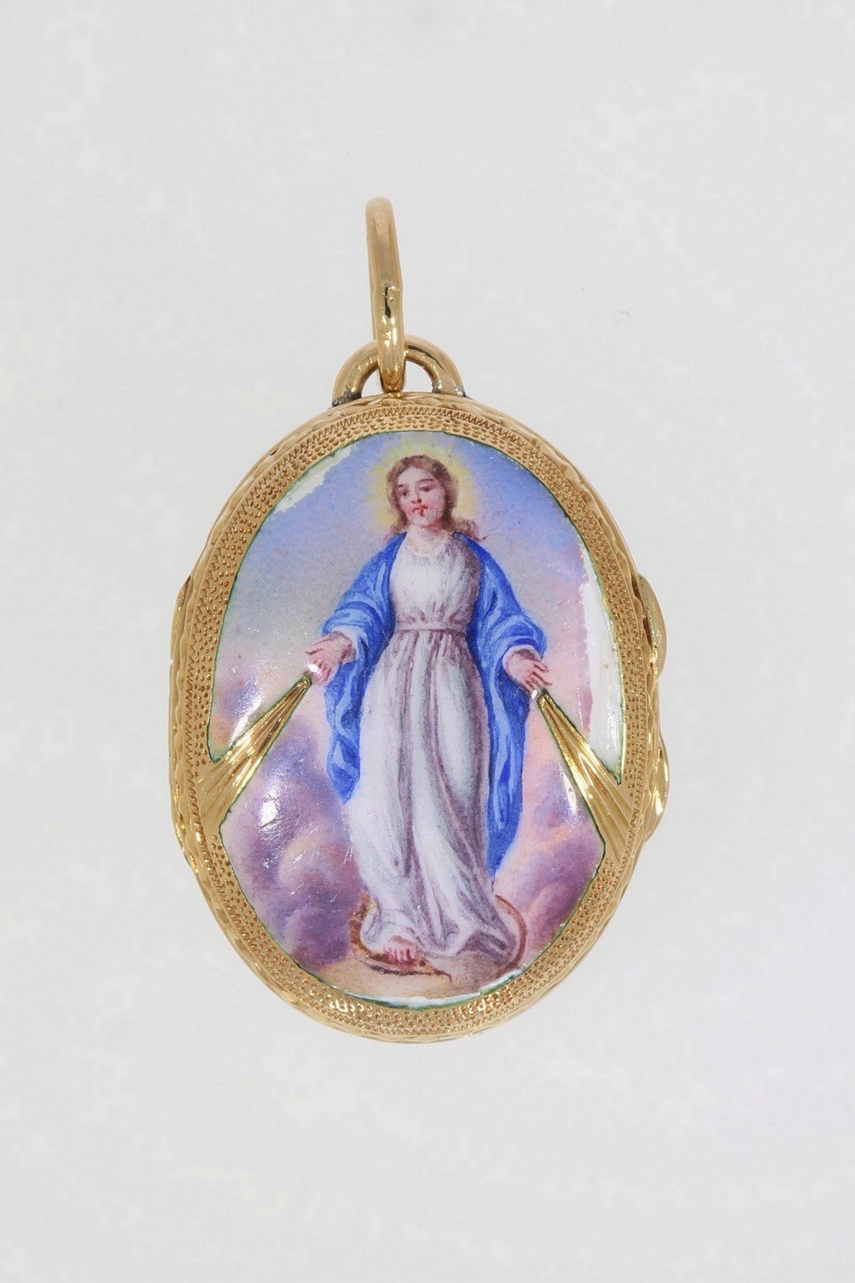 Besonderes Emaille mit Heiliger, Viktorianischer Stil