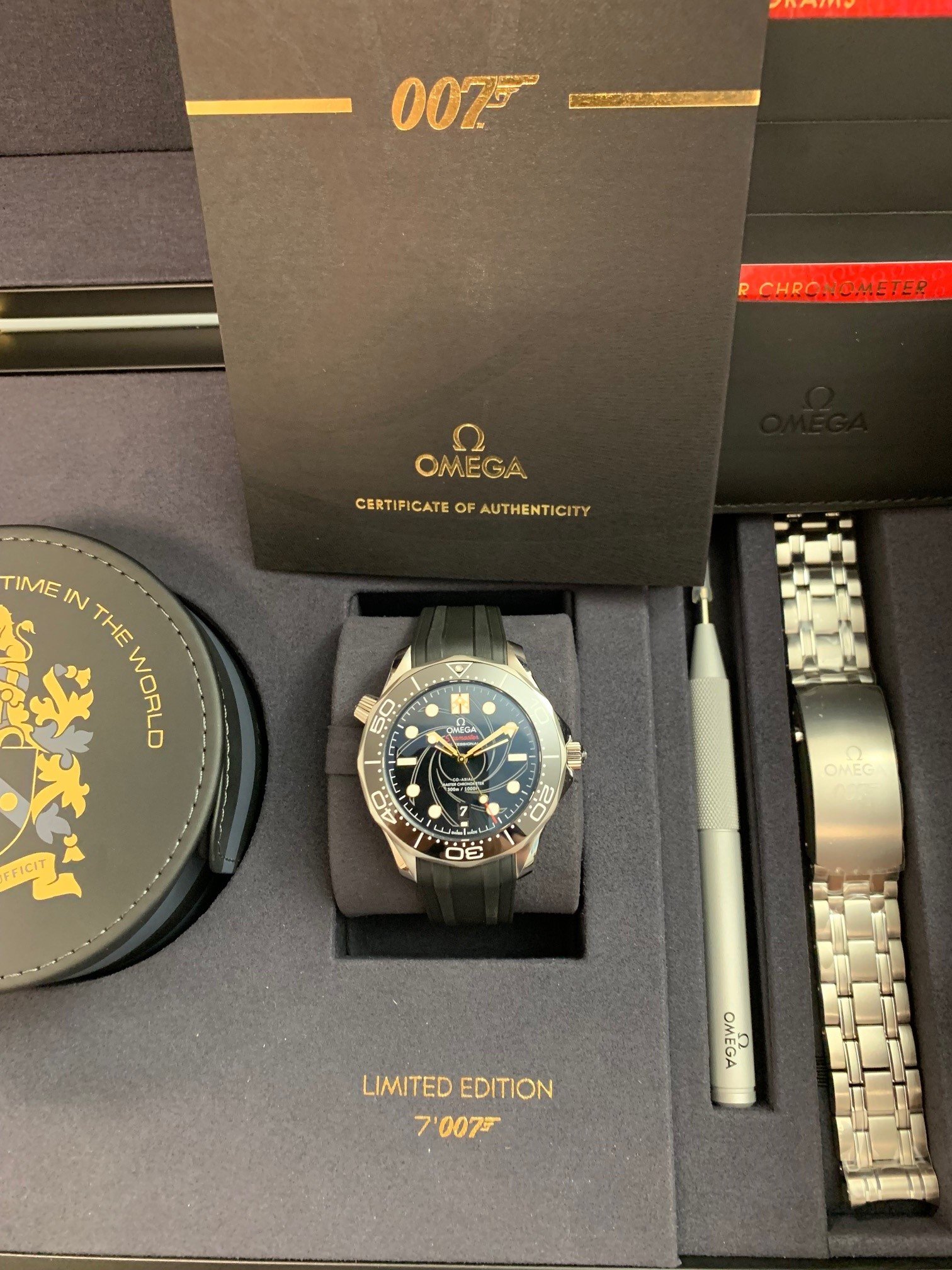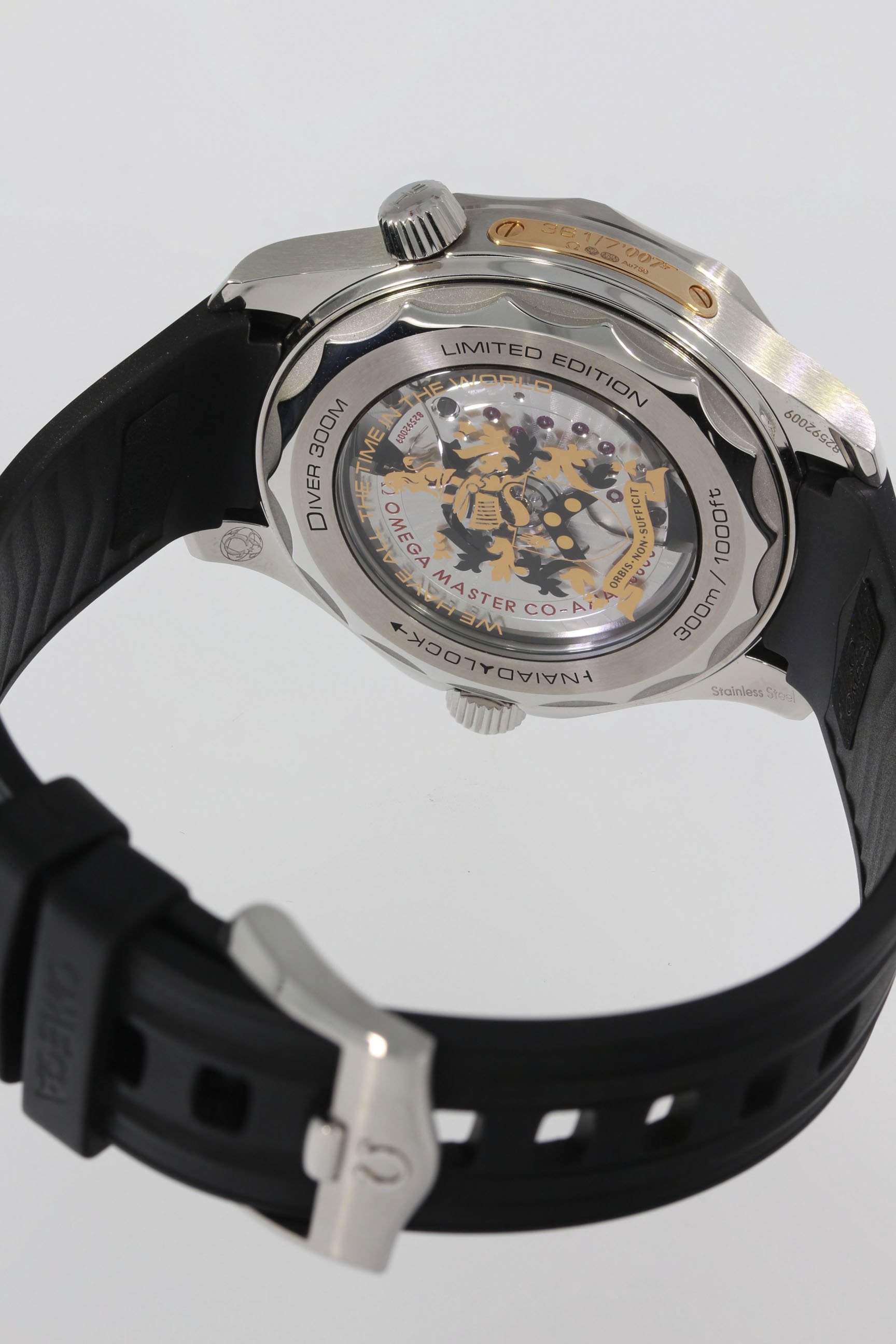 Mit weltweit nur 7.007 verfügbaren Exemplaren hat Omega sichergestellt, dass jeder Zeitmesser eine eigene Signatur erhält. Auf der Gehäuseseite wurde die jeweilige Limitierungsnummer in eine verschraubte Plakette aus 18 K Gelbgold eingraviert. Ein Element, welches auf die fünfzigjährige Geschichte von James Bond hinweisen soll, ist die Zahl 50, welche sich auf dem 10 Uhr Index befindet und in der Nacht zu leuchten beginnt.