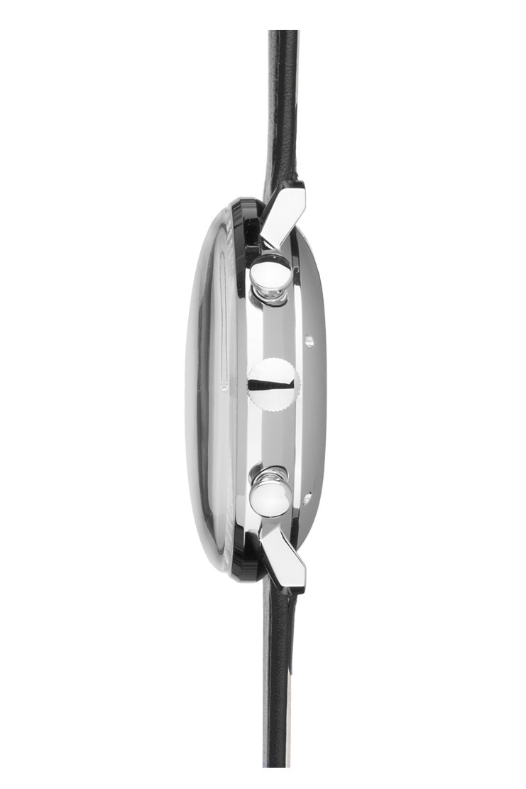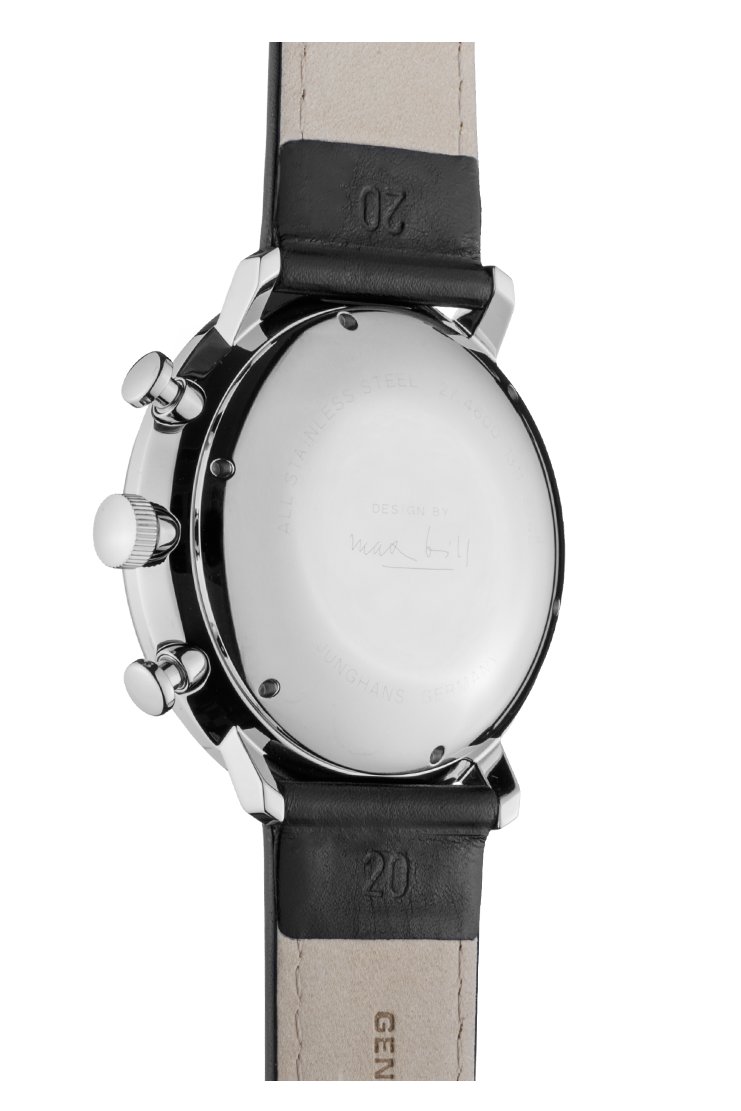 Wie alle Modelle der Linie besticht auch das Design der Max Bill Chronoscope Automatic durch die Konzentration auf das Wesentliche. Das beweist die klare, reduzierte Gestaltung des Zifferblatts. Durch den Verzicht auf die Anzeige der kleinen Sekunde entsteht eine besonders schöne Symmetrie.