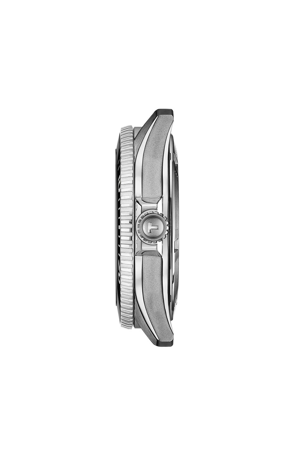 Die Tissot Seastar 1000 Powermatic 80 40mm mit dem präzisen Powermatic 80 Automatikwerk und einer amagnetischen Nivachron-Spirale sie bis zu 80 Stunden Gangreserve. Das 40-mm-Gehäuse aus 316L-Edelstahl mit dezenten Einkerbungen entlang der Flanken verleiht ihr ein kompaktes und modernes Erscheinungsbild.